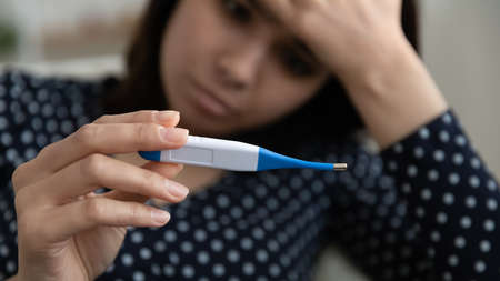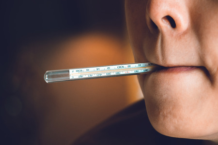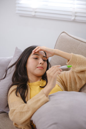 young woman using a fever thermometer