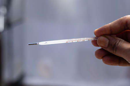 man hand holding thermometer, Temperature measuring by a thermometer
