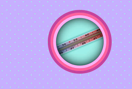 Thermometer for measuring body temperature, glass mercury in a colored package, in which there is a round hole and a thermometer is visible through it