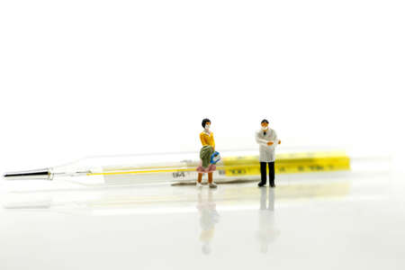Woman hand holding mercury thermometer with high temperature on background of child sick with flu closeup