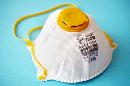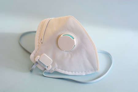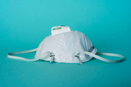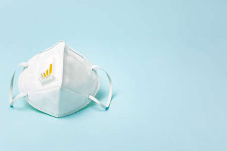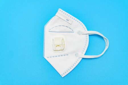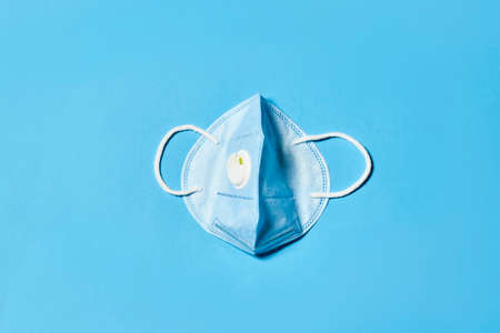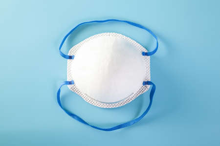 Respirator mask FFP or dust mask to cover the mouth and nose prevent coronavirus isolated on blue background. Breathing protection against air pollution, flu and coronavirus