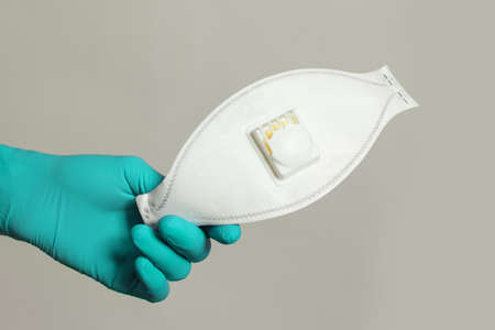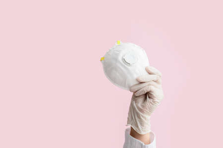 Medical filtering face piece mask in doctor or nurse hand, safety and virus protection concept