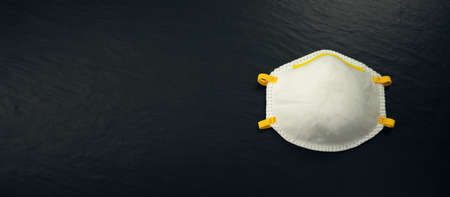 White medical face mask. Concept of coronavirus quarantine and ultra-fine microdust. Top view.