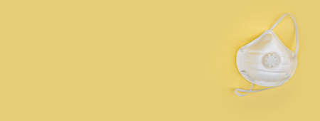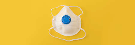 Medical mask. Yellow background. Face mask protection against pollution, virus, flu and coronavirus. Health care concept