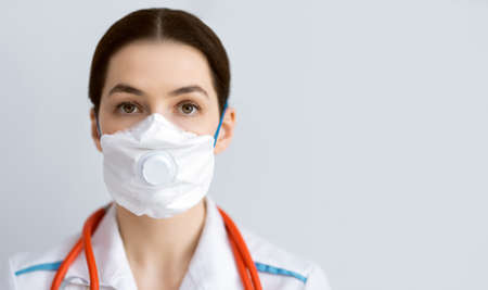 Doctor wearing facemask during coronavirus and flu outbreak. Virus and illness protection, home quarantine. COVID-2019