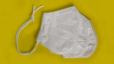 Set of white masks from coronavirus on a yellow background. High quality photo