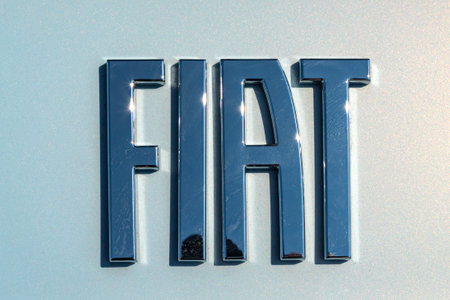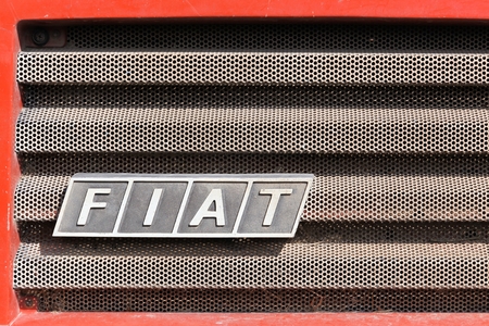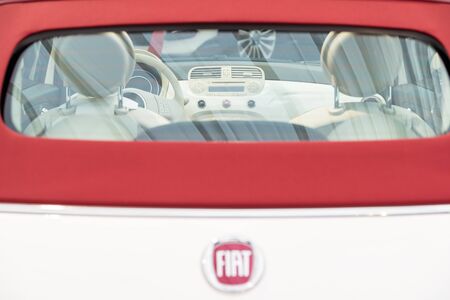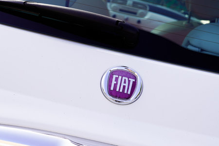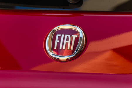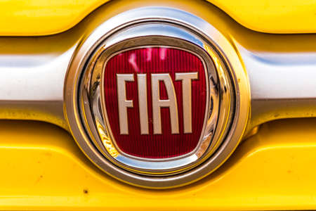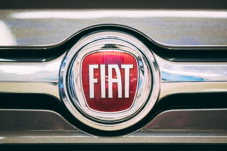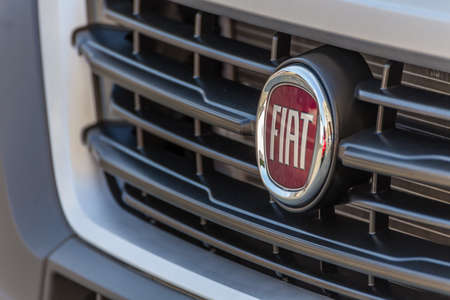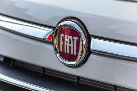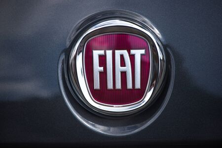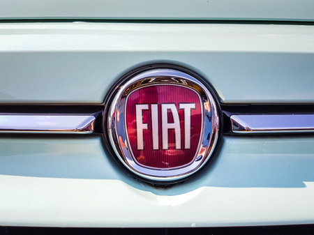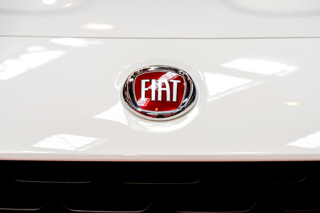 Barro, France - September 24, 2017: Fiat on a car. Fiat Chrysler Automobiles is an Italian-American corporation and currently the world%u2019s eighth largest auto maker