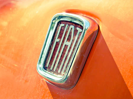 BERLIN - MAY 11 Emblem subcompact Fiat 500 F or Berlina, 26 Oldtimer-Tage Berlin-Brandenburg, May 11, 2013 Berlin, Germany