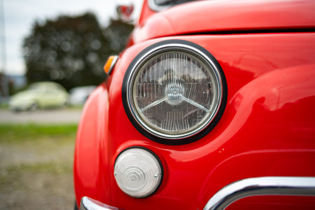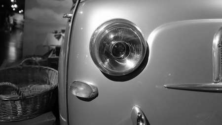 Turin, Italy - June 20, 2021: a headlight of an antique car at the Automobile Museum