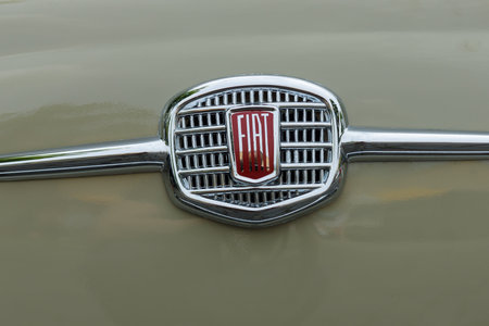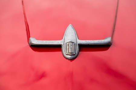 Sofia, Bulgaria - August 14, 2016: Retro FIAT car logo on an attique car at a retro car parade.