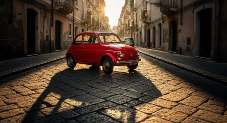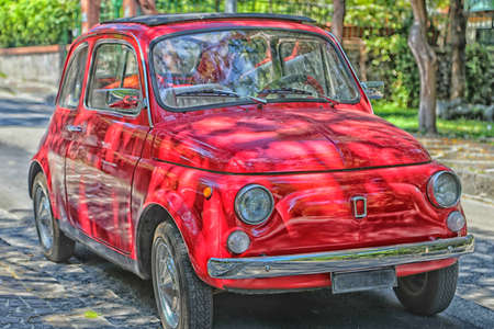Old red car on the street in Rome, Italy. Retro style