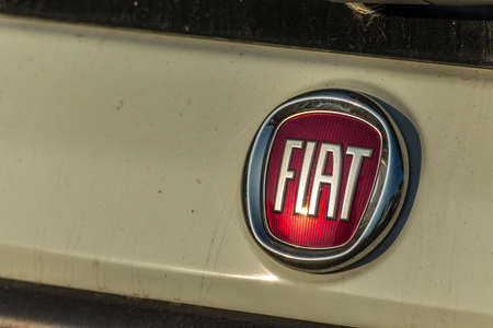 LUGO, ITALY - September 11, 2018: light enlightening FIAT logo on a car body
