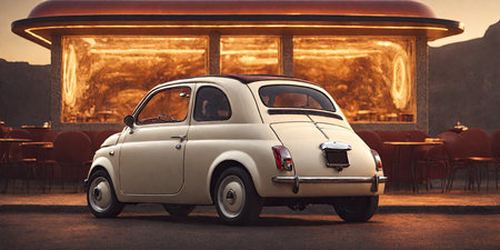 View of a beautiful iconic car and a symbol of Made in Italy in the world: The Fiat 500 in this custom version.
