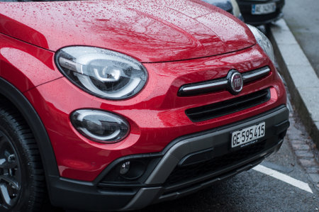 Mulhouse - France - 13 January 2019 - retail of rain drops on red fiat 500X front parked in the street