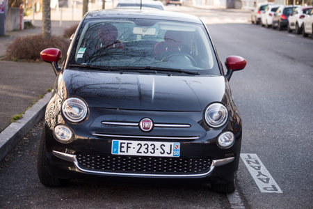 Mulhouse - France - 25 January 2022 - Front view of black Fiat 500 parked in the street