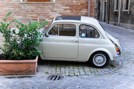 Fiat 500 on the street in the center of Locorotondo. Fiat 500 was produced by the Fiat company from 1957 to 75.