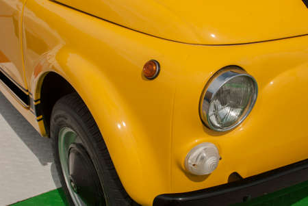 A part of small yellow vintage car closeup