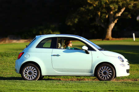 CALBLANQUE REGIONAL PARK, MURCIA, SPAIN - JAN 2020: Fiat 500 rental car in the Parque Regional de Calblanque