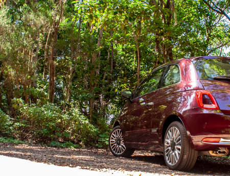 CALBLANQUE REGIONAL PARK, MURCIA, SPAIN - JAN 2020: Fiat 500 rental car in the Parque Regional de Calblanque
