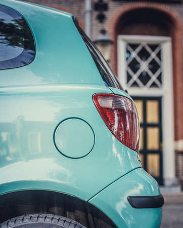 Headlight blue retro car close up view