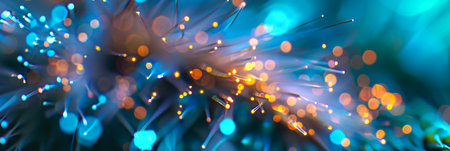 This image showcases a stunning abstract representation of fiber optics with glowing particles against a dark background, symbolizing advanced technology and connectivity.