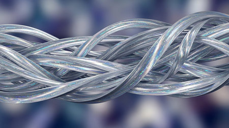 Close up of a shiny blue fiber optic cable. 3D rendering
