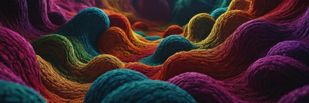 A vibrant and colorful abstract arrangement of yarn showcasing intricate textures and patterns. Perfect for creative projects focusing on craft.