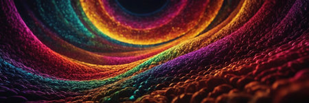 Woven rainbow wool creates vibrant textured backdrop generated by artificial intelligence