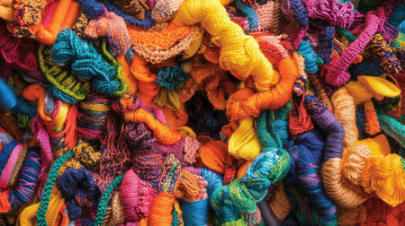 A vibrant and colorful arrangement of various textile fibers and threads showcasing intricate textures and patterns ideal for textile and craft projects.