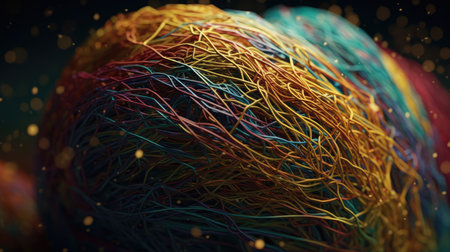 Abstract background with multicolored threads. 3d rendering, 3d illustration. Created with Generative AI technology