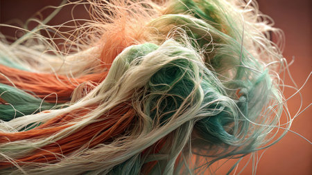 This close-up image captures the intricate texture of soft orange hair fibers, ideal for various creative projects or backgrounds, showcasing warmth and softness.