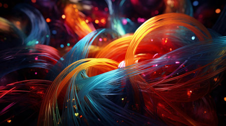 Colored electric cables and led. Optical fiber, background for technology image and new business trends created. Generative Ai