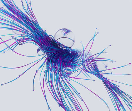 abstract colored telecommunication wires with glow at the end, 3d illustration