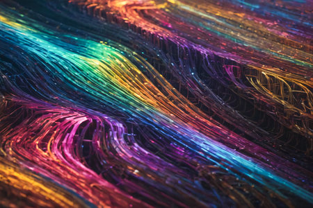 Vibrant strands of light dance gracefully, casting a rainbow of colors across a dark background. The shimmering patterns evoke a sense of wonder and serenity during twilight.
