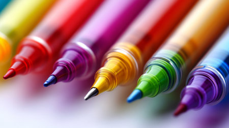 Vibrant Rainbow Colored Markers Close Up Shot Artistic Design Pen Image Style Image Colors Bright