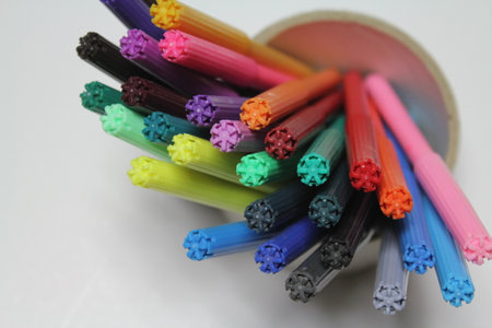 Start the new school year with a world of creative possibilities thanks to this stock photo that features a selection of colored markers on a white background. These markers offer a fun and colorful way to study, take notes, and make visual schemes. From underlining key concepts to highlighting brilliant ideas, students can use these markers to highlight their path to academic success. Perfect for promoting stationery products, drawing tutorials and creative activities in the back to school