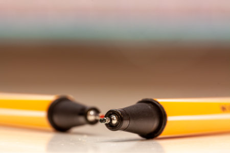 Technical pens on a white background.