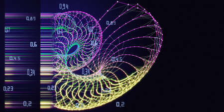 Graphic representation of the Fibonacci sequence and the golden number or divine proportion. Generative AI