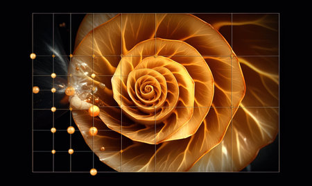 A Fibonacci spiral in the golden ratio, Ai generated image