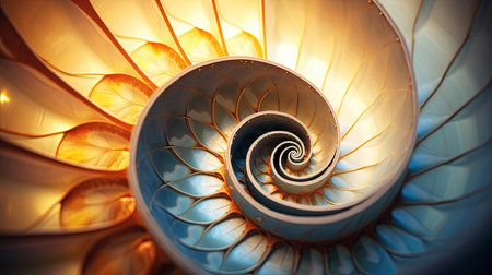 close-up of a nautilus shell showing spiral formation, created with generative ai