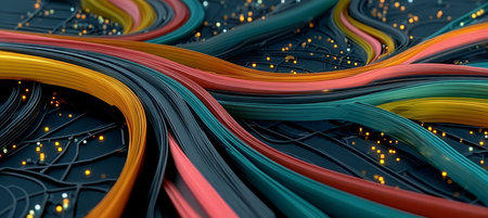 Electrifying Fusion: Kaleidoscope of Colors and Intricate Fiber Optic Cables Illuminate the Scene created with Generative AI technology