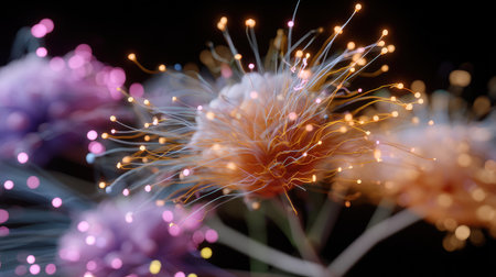 This captivating abstract floral composition features intricate petals illuminated by vibrant lights, showcasing nature's elegance in a stunning artistic display.