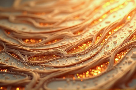 Abstract golden waves with glowing texture in warm light. That the image is generated using AI.