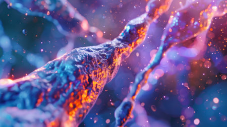 This vibrant abstract image explores cellular structures and bioengineering. The intricate patterns and colors illustrate molecular interactions and scientific advancements.