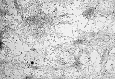 A phase contrast image of Schwann Cells in culture. Schwann cells support the nervous system in the body by wrapping themselves around axons and providing insulation for the travelling electrical impulses.