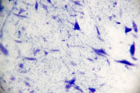 Neurons and nervous system in the human brain. Histology of human brain tissue. Photo under microscope view.