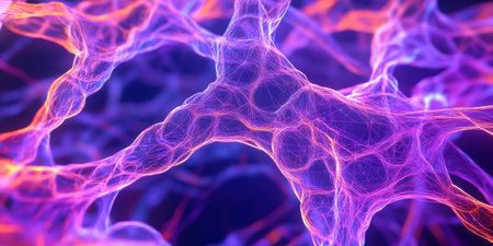 Glowing nerve cells in futuristic space backdrop generated by artificial intelligence
