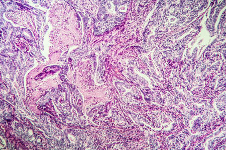 Lung adenocarcinoma, light micrograph, photo under microscope