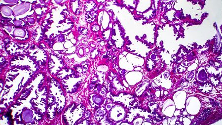 Histopathology of prostate gland hyperplasia, light micrograph, photo under microscope
