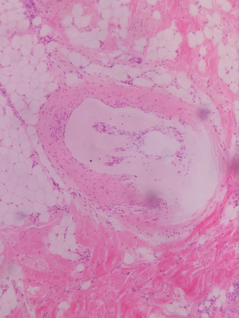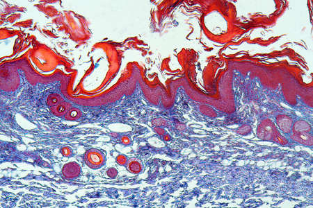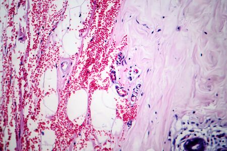 Education anatomy and Histological sample of Human under the microscope.